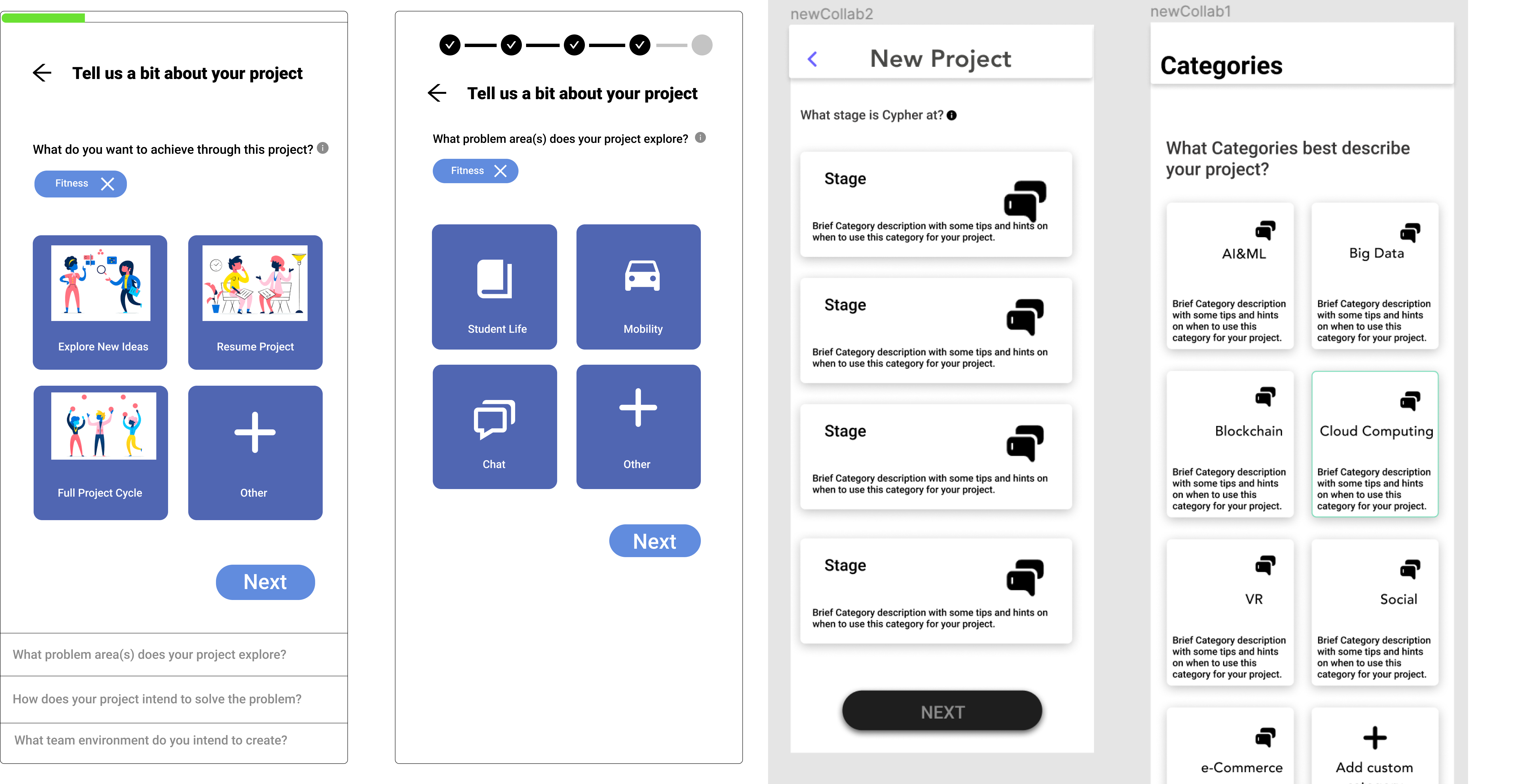 Through this exercise, we also discovered that students were hesitant to push their projects outside of school because they lacked the time, resources, passion, and confidence to do so. While some of these are problems beyond our control, we found that there was still a need to provide an easy way for users to find collaborators and create a project when the circumstances were right for them.