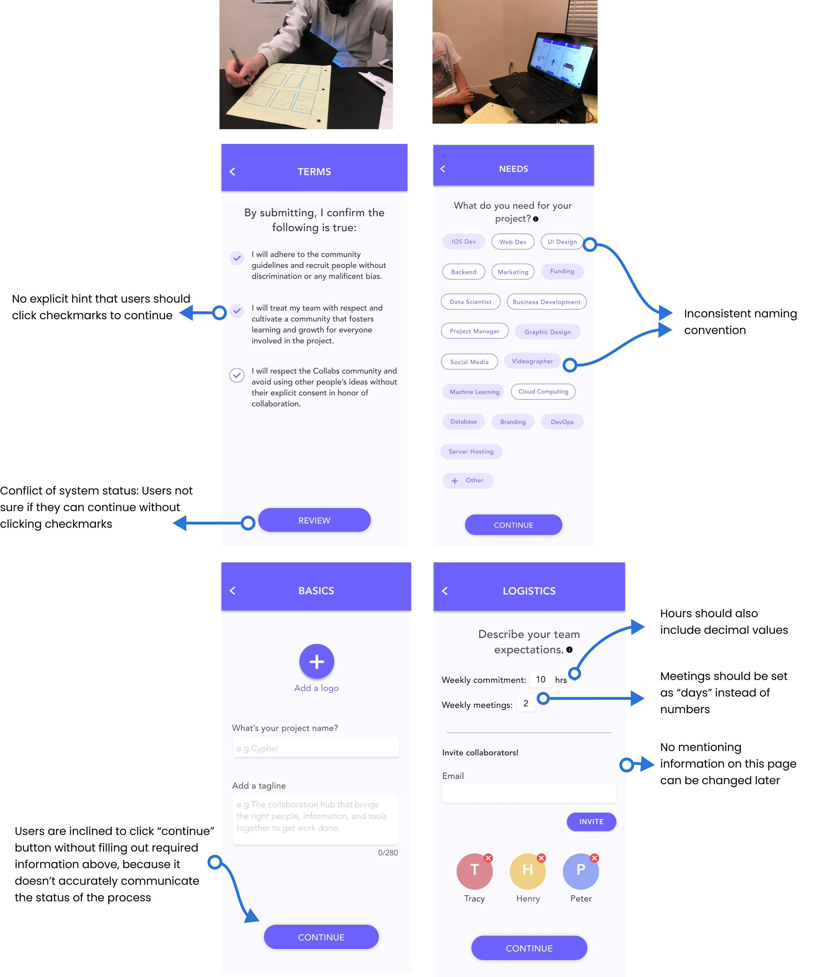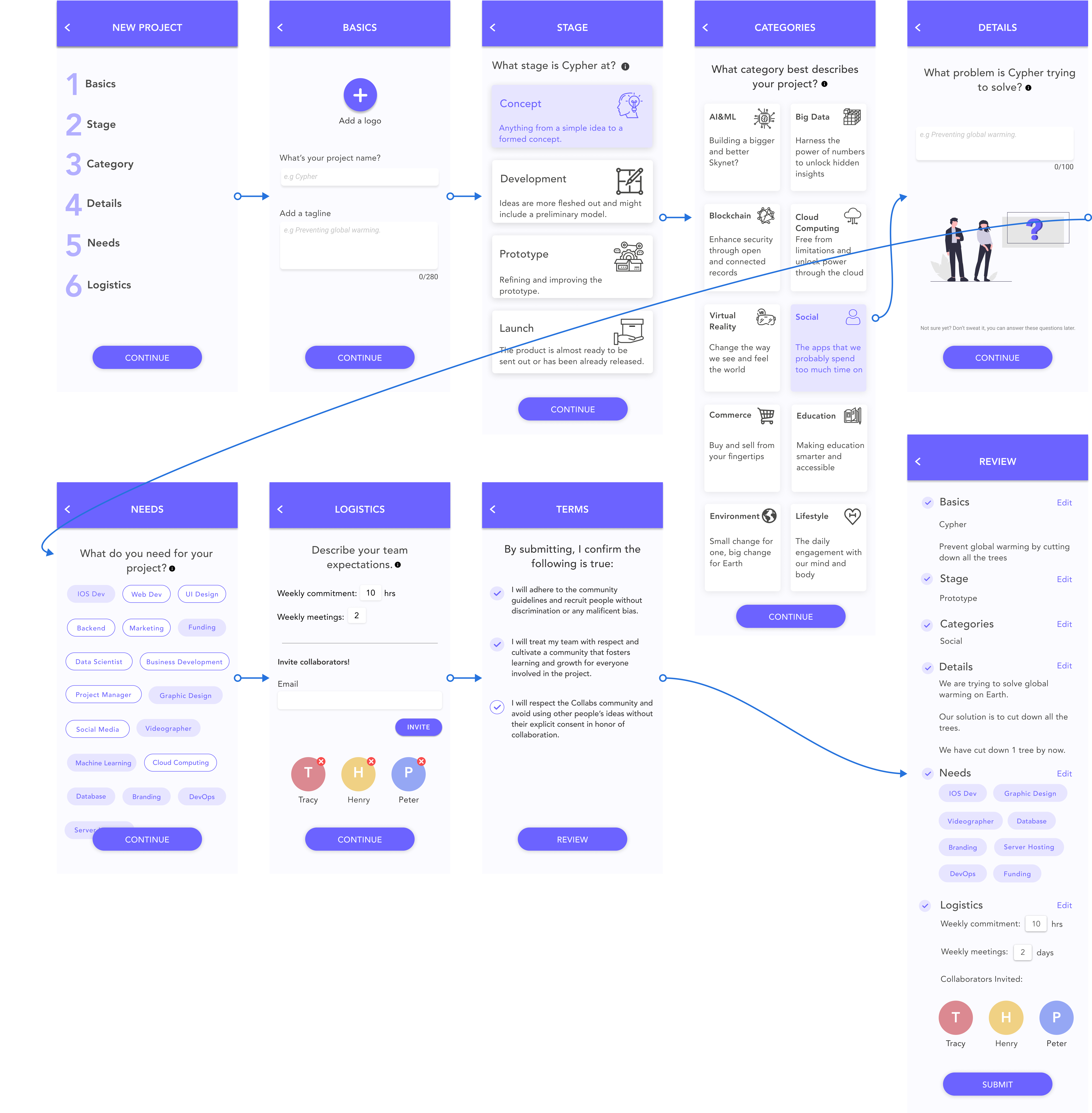 We user tested one of our core flows, the project creation flow, using a high fidelity prototype.